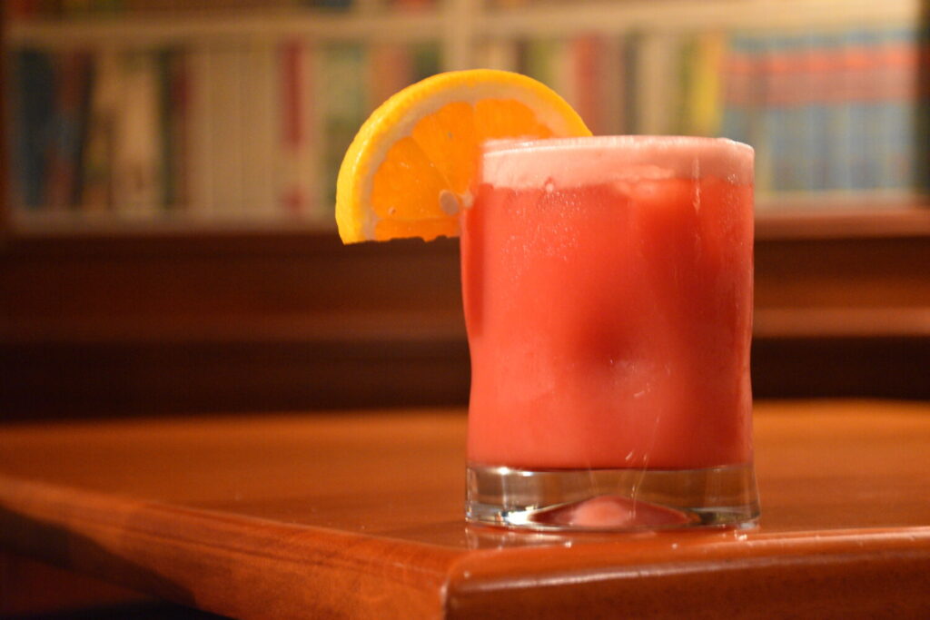 Another option is the $12 Sucker Punch, a fan favorite at the Regency Hotel’s cozy yet large library-themed Armory Lounge (but also available at the hotel’s outdoor Garden Café). Combine 1.5 ounces Jimador Silver tequila, 0.5 ounce Malibu rum, 2 tablespoons blood orange puree, 1 tablespoon Coco Lope, and a splash of fresh lemon juice, served over ice, topped with club soda, and garnished with an orange slice.