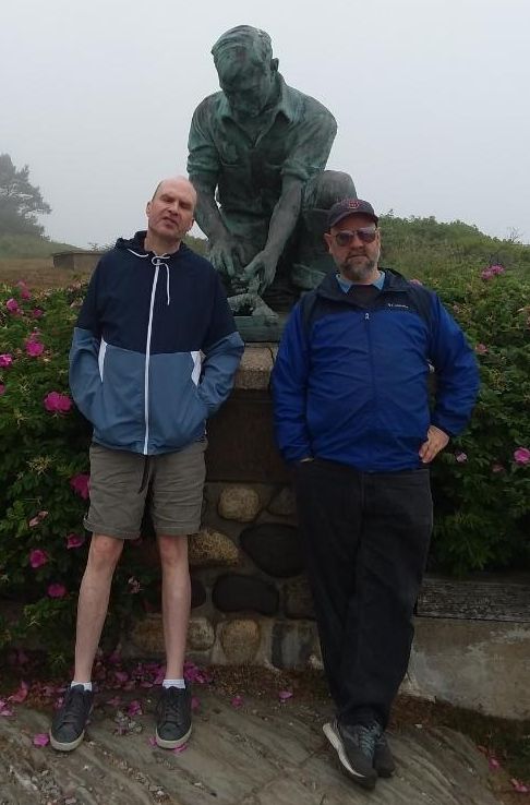 Brunswick-based Independence Association clients have been enjoying the outdoors responsibly during the pandemic, including Frank Carman and Brandon Ladner, posing with a familiar figure at Bailey Island Land’s End. John Zerrlaut