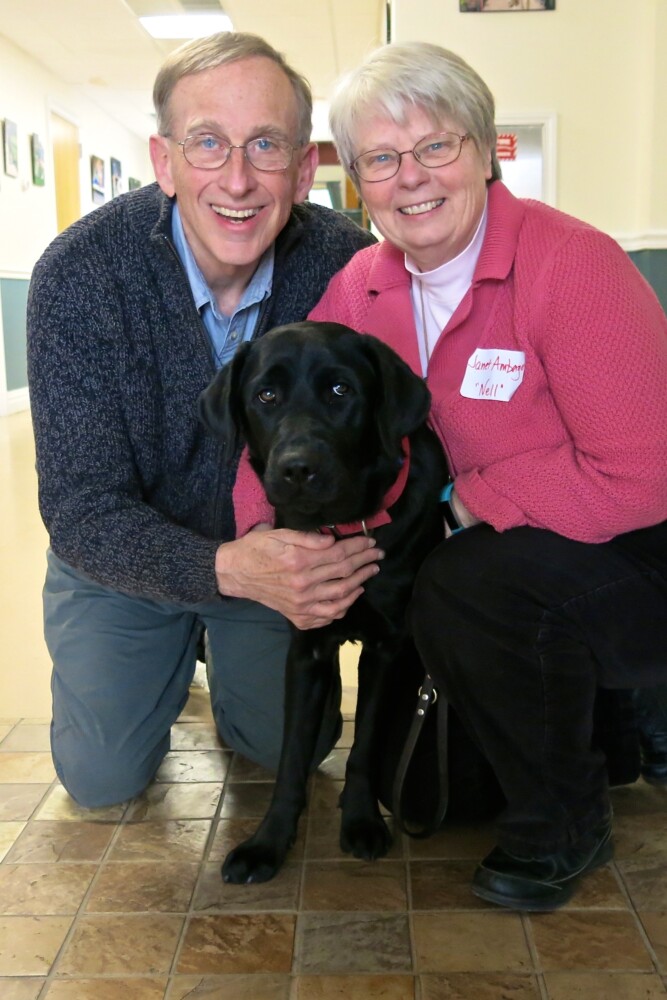 Janet and Larry Amberger pose with Nell, a black Labrador retriever the couple raised for Guiding Eyes for the Blind. The dog went on to become a breeder for the organization. Photo submitted by Janet Amberger