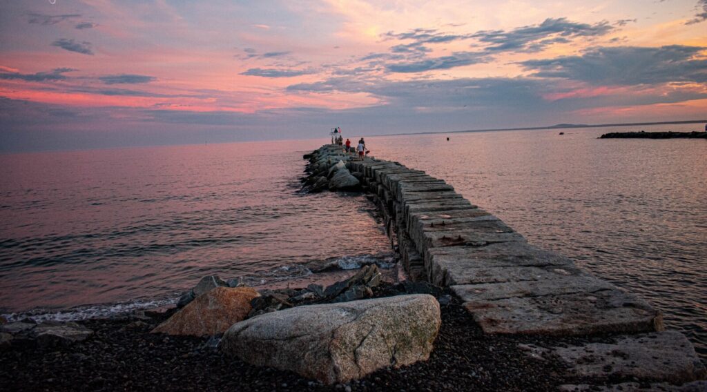 Sunset at the Kennebunk River breakwater near Colony Beach in Kennebunkport. Cynthia Fitzmorris photo