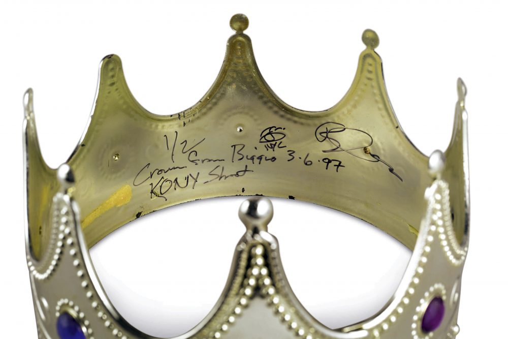 The crown has been in photographer Barron Claiborne’s possession since he captured Biggie for the cover of Rap Pages magazine. Claiborne had provided the prop, hoping to portray Biggie as the king of New York. Sean “Diddy” Combs, owner of Biggie’s label Bad Boy Entertainment, was with the rapper on the photo shoot.