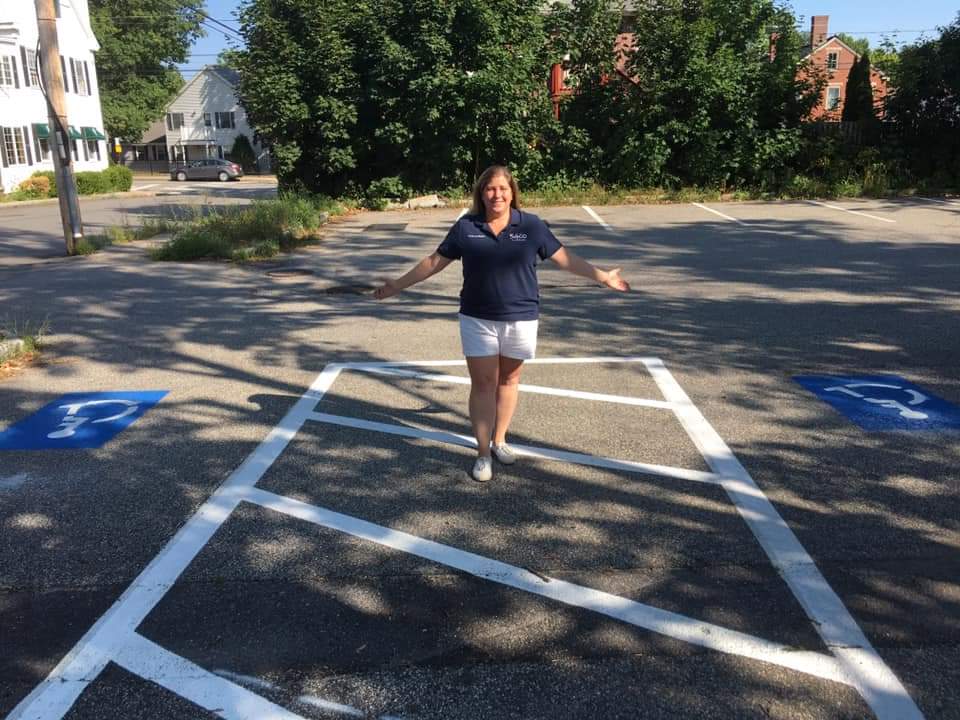 Saco City Councilor Jodi MacPhail, working in conjunction with Age Friendly Saco and the Saco Dept of Public Works, introduced new van accessible handicapped public parking spots in Saco.