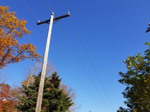 The transmission line, which runs about 5 miles and provides power to about 7,800 customers in Brunswick and Topsham, is being entirely rebuilt. Since this line is the only source of power in the area, the new line will be built 15 feet to the side of the existing 45-foot poles, which will be replaced with new, 75-foot poles.