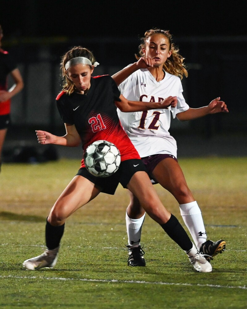 Scarborough had a couple chances to pull even, but Capers senior back Samantha Olsen broke up a pass from Mokriski to Pettingill, Scammell’s free kick found the foot of freshman Lana Djuranovic, whose one-timer trickled just wide of the far post, then Drapeau missed just wide.