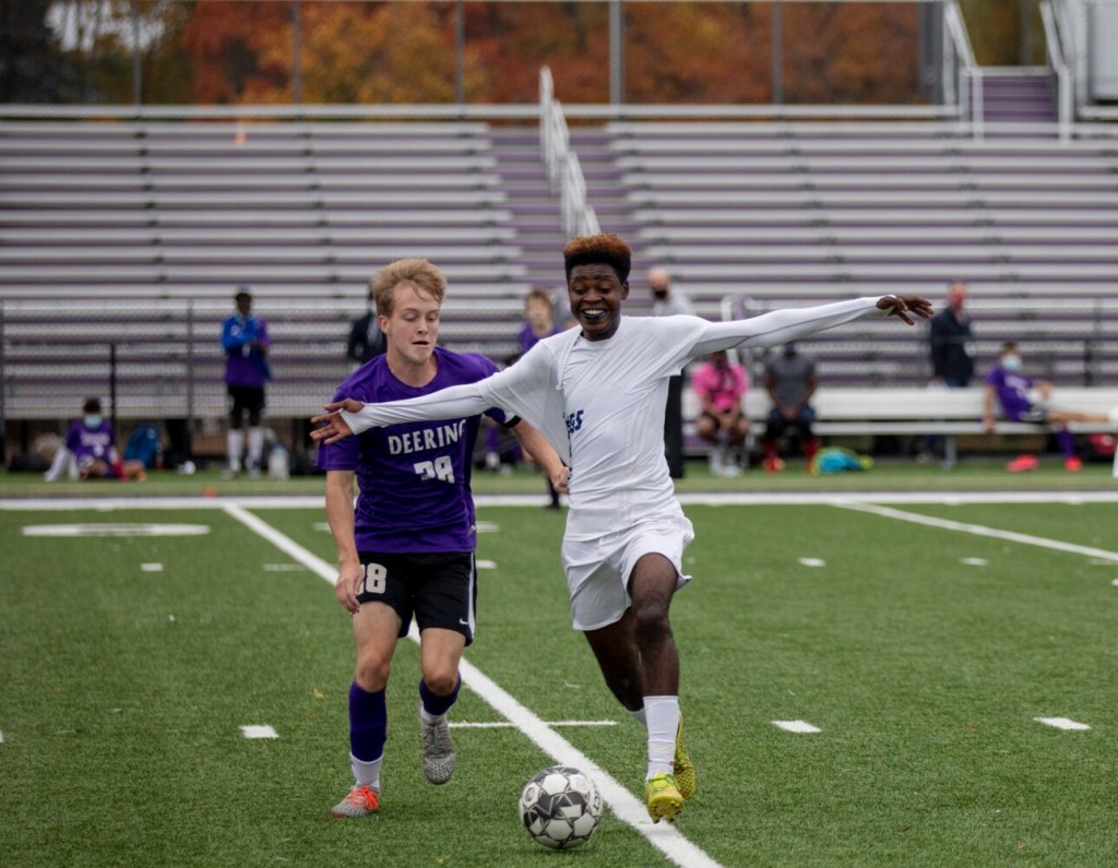 “It was a great one,” Frenzilli added. “You want to win the rivalry games. Hats off to Deering. They never gave up. They came out pushing in the second half and tied it up. Deering’s very dynamic. The midfield battle was great today. That’s where it’s won or lost. We were fortunate enough to get a couple balls out wide and took advantage. You throw the record book out when you play a game like this.”
