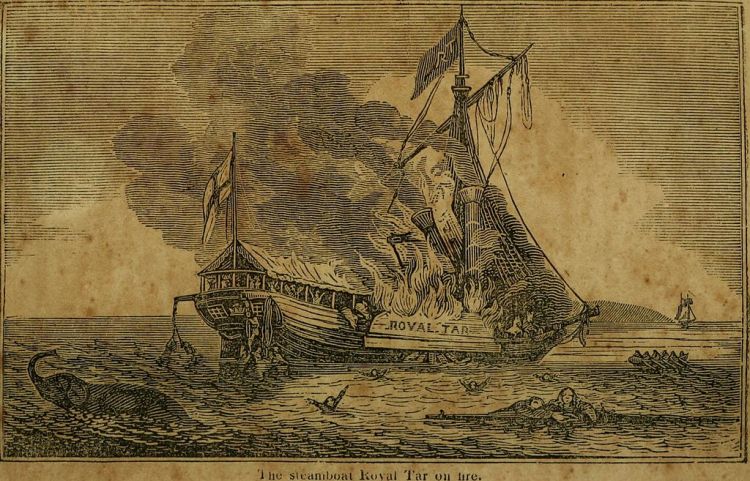 Oct. 25, 1836: The passenger steamship Royal Tar, heading from Saint John, New Brunswick, to Portland, burns and sinks in Penobscot Bay while carrying a variety of circus animals, as well as 72 passengers and 21 crew members.