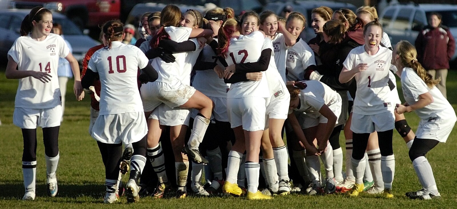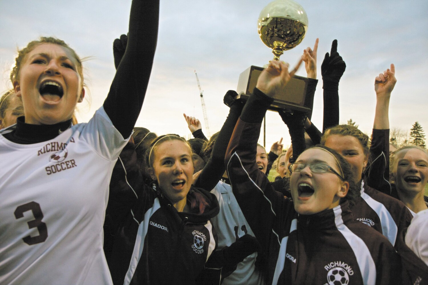The Richmond High School girls soccer team celebrates after they edged Van Buren 1-0 in the 2010 Class D state title game. Morning Sentinel file photo