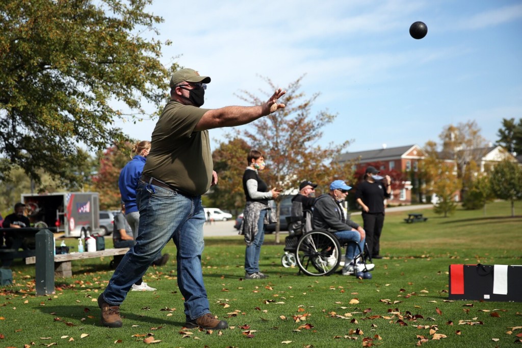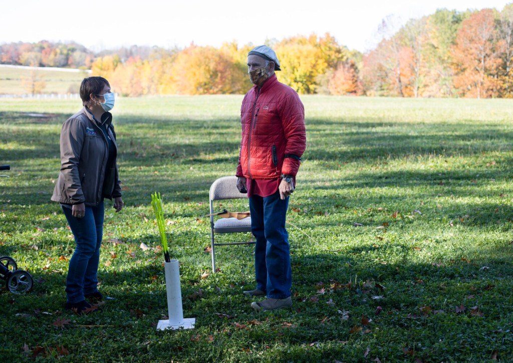 Smith has been attending VAST activities just about weekly this summer and fall. On a recent Wednesday morning, he was among a dozen veterans using an outdoor archery range, masks on. But he’s also gone bowling with other veterans, played bocce and hiked. His MS affects his balance and causes dizziness, so he uses walking poles and sometimes a three-wheeled walker that VAST provides. He was hoping this fall to go on a mountain biking trip with the program.