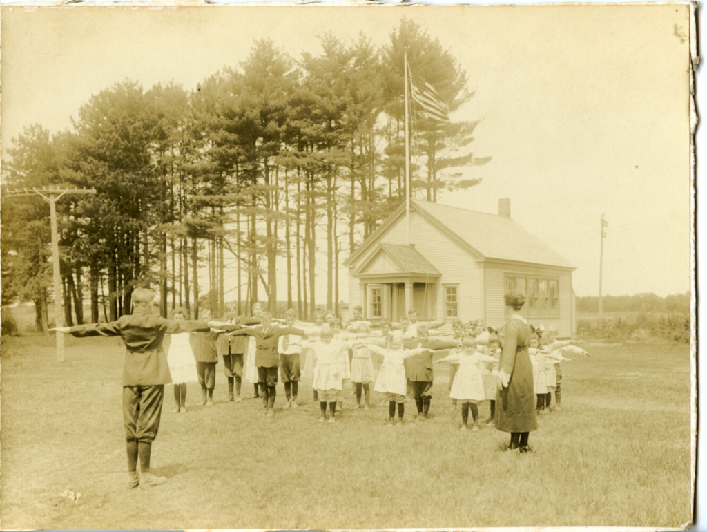 The North Scarborough School, shown here around 1900, was a one-room building on County Road near the junction of Gorham Road. Students attended there from 1875-1958. It was closed by the town due to the expense of providing “modern toilets” and students were sent to Eight Corners School, which opened in 1959.
