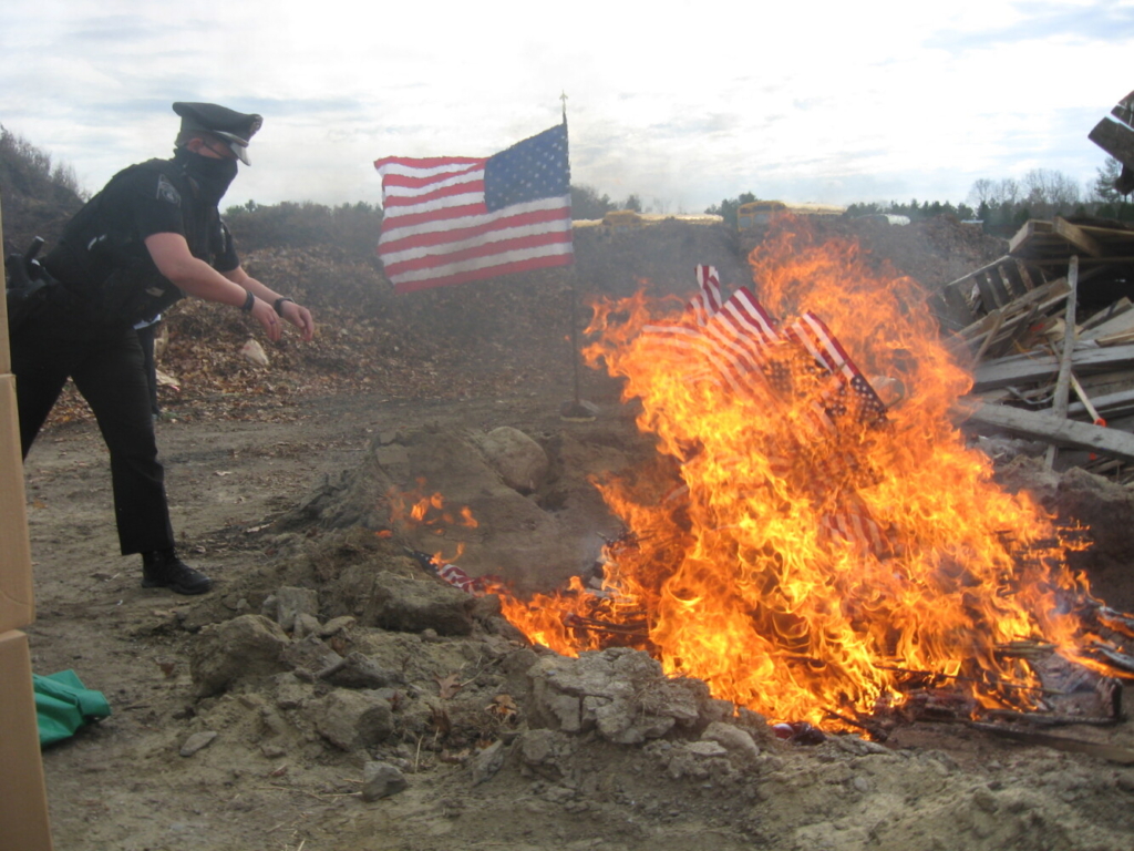 Gorham Police Department collected tattered and worn flags donated by residents over the past several months and properly disposed of them in a burning on Veterans Day at Public Works.