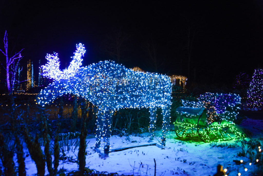 Rather than strolling through the gardens, visitors must remain in their cars and drive through the light display in order to keep people at a safe distance from one another. The route is about a mile long and takes roughly 30 minutes to complete.
