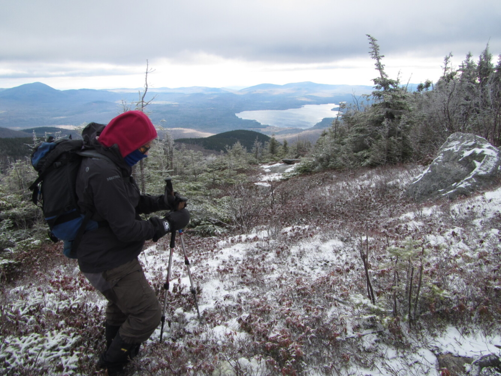 It was a beautiful late fall day on my drive to the mountainous community of Weld in western Maine. The forecast was sunny with seasonal temperatures and light winds. My rosy weather prediction had helped convince retired New Hampshire friends Laurie Wunder and Tom Meredith to join me for a hike on Little Jackson Mountain. Their first climb of the impressive peak, they were looking forward to spectacular views on the barren summit.