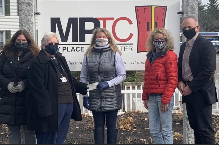 Gorham/Westbrook/Windham Triad recently donated $250 to My Place Teen Center in Westbrook. Pictured from left are Michelle York of Westbrook Housing; Doris Ames, Triad; Donna Dwyer, MPTC; Buffy Houp, Triad; and Sgt. Ted Hatch, Gorham Police Department. Triad is a senior residents’ support group of elder providers and police enforcement to improve safety and quality of life for seniors. Courtesy / Buffy Houp