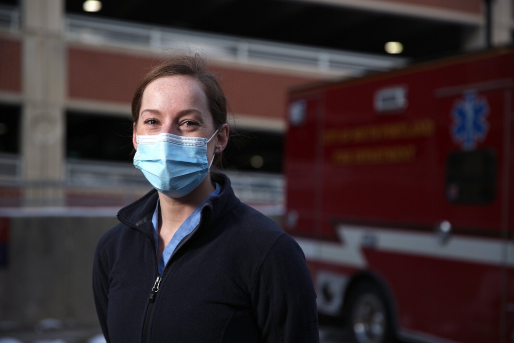 Michelle Burke is a registered nurse who lives in Portland and works in Maine Medical Center’s emergency department, often with people who fear they have COVID-19. She was among the first front-line health care workers to be vaccinated in Maine. Ben McCanna/Staff Photographer