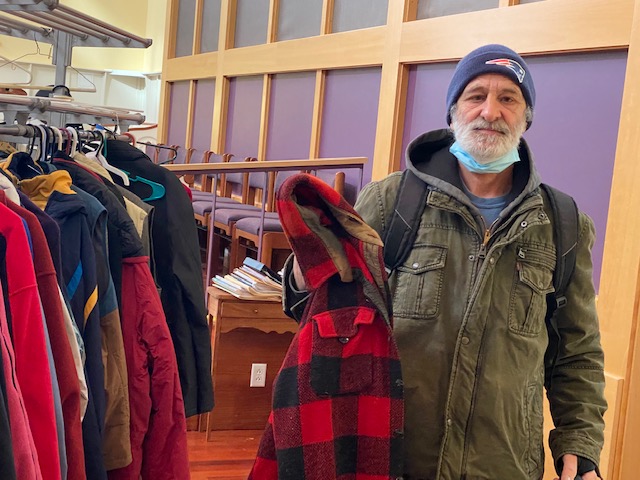 At the Saco First Parish Congregational Church, Dave Barron of Arundel was checking out the coats.