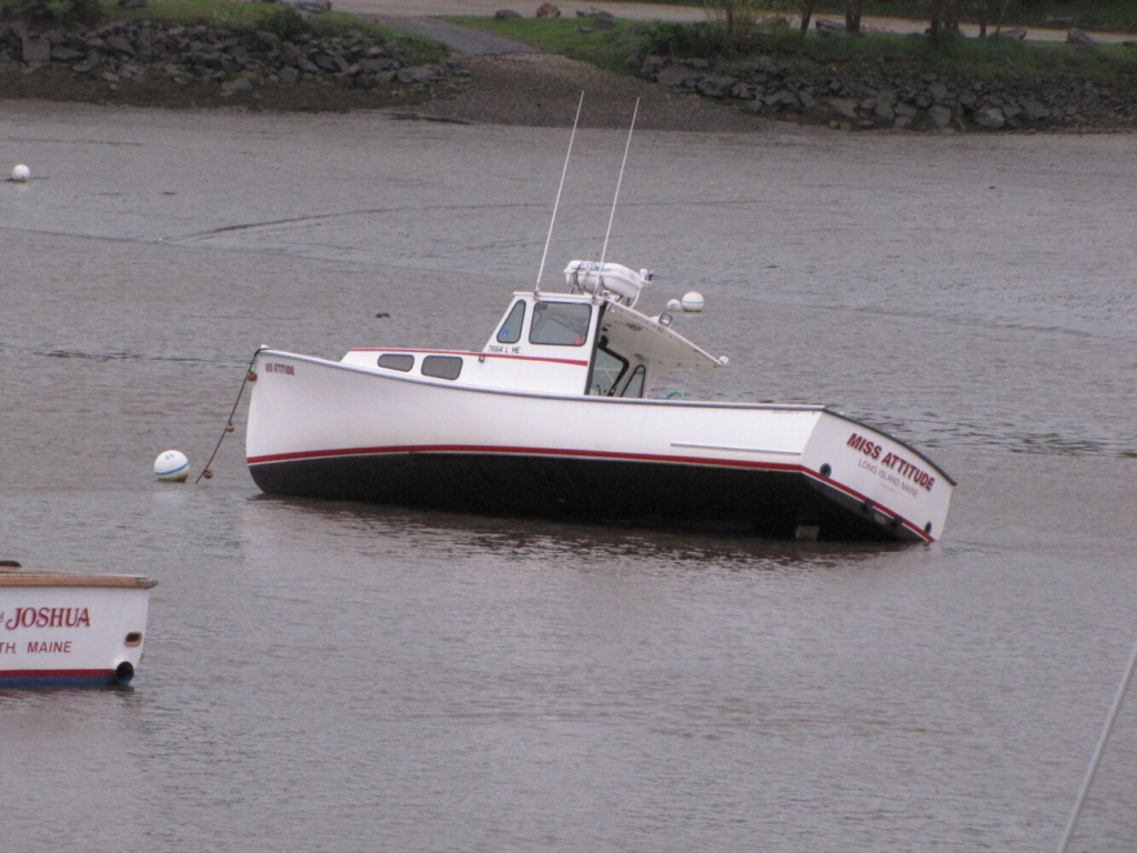 A boat in the Royal River about five years ago, before the last dredge at Yankee Marina and Boatyard. According to Deborah Delp, marina president, the listing is due to the impact of excess sediment. Contributed / Deborah Delp