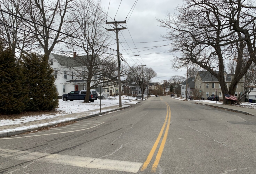 For comparison, this photo was taken this week from roughly the same place. The original hose company would have been on the left. Although built later, the Bathras Market building at 412 Preble St. (just out of view to the right in this photo), is roughly opposite the site of the original hose house. South Portland Historical Society photo