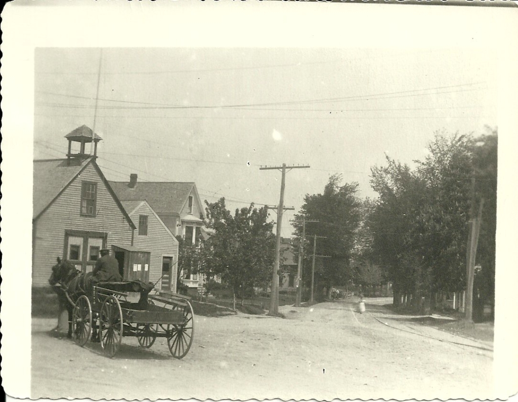 In the historic photo shown here, Clint Twitchell is sitting in his delivery wagon and is letting his horse get a drink at the horse watering fountain on Preble Street. The building on the far left is the original Willard Hose Company fire house. South Portland Historical Society photo