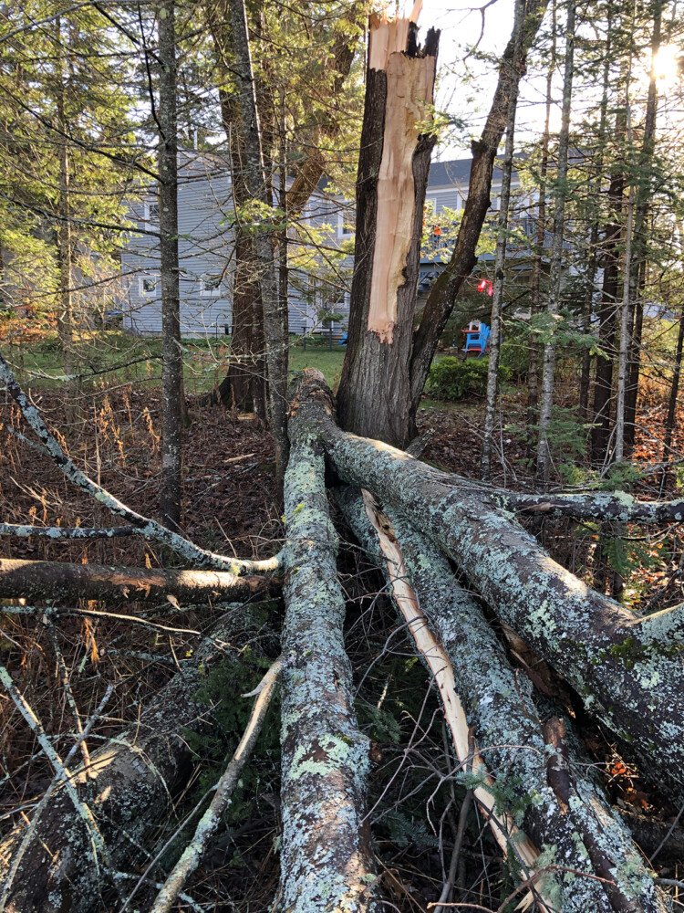 Honestly, the only way I can see a fallen tree being harmful is if something non-native takes its place. Maine Audubon’s Forestry for Maine Birds program, which targets loggers, foresters, and larger land owners, has great information on the importance of diverse forests and many more details on benefits for wildlife. Learn more at: maineaudubon.org/FFMB