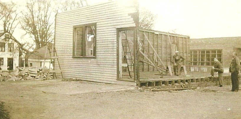 An ell was added to the right side of the hose house, so that the main original hall could be used for meetings and social functions with the fire equipment stored in the addition on the right.