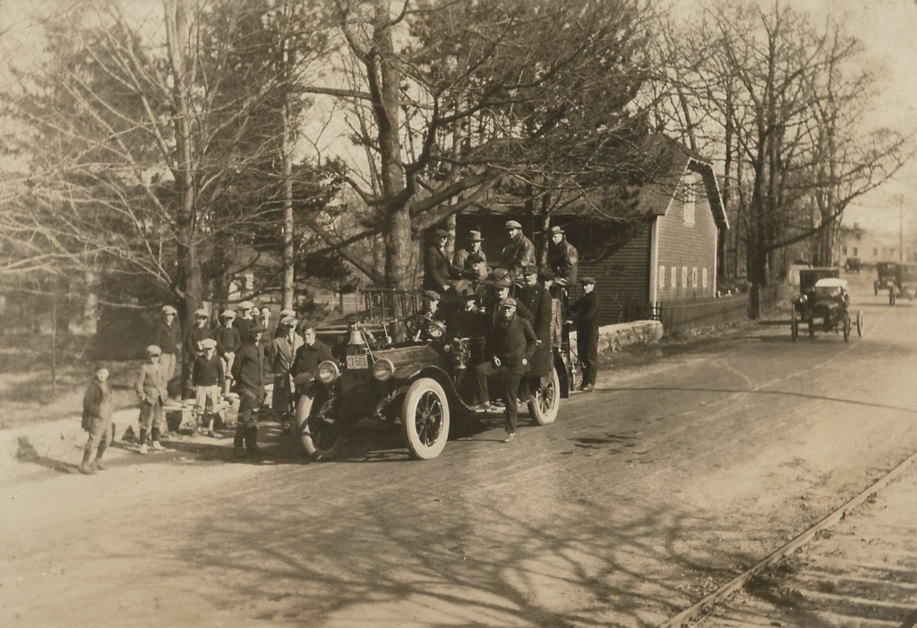 Members of the Willard Hose Company riding on their Peerless Hose 2 truck. Fireman Norman Thompson is at the wheel. South Portland Historical Society