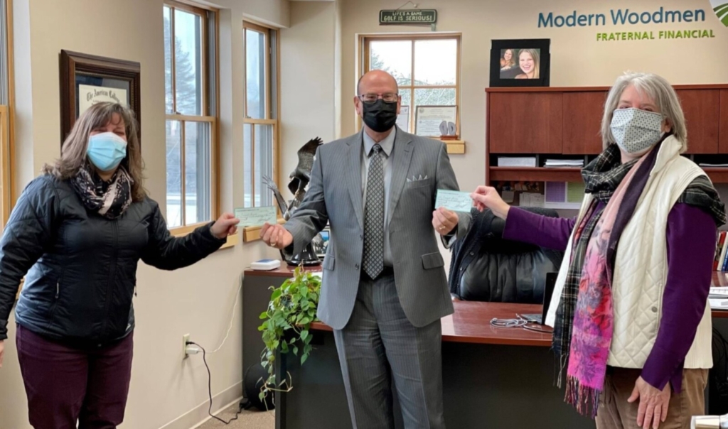 McDonald Family and Modern Woodmen Fraternal Financial give $2,500 to Keep Our Neighbors Warm Fuel Rally challenge. From left to right: Alberta Follansbee, Scott McDonald, Steffi Cox. Courtesy photo Steffi Cox