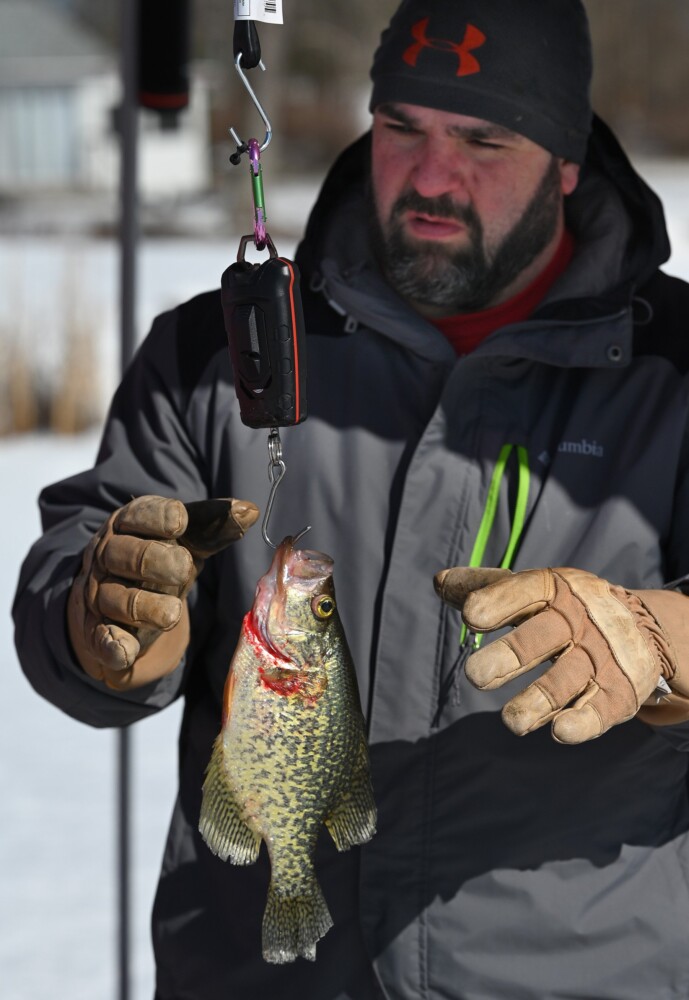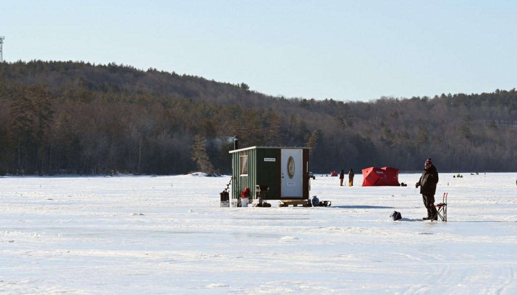 The derby started at sunrise and ended at 3 p.m. Ice fishermen from all of the New England states, and as far away as Pennsylvania, tried their luck at winning first, second and third place cash prizes. Participants were scattered across nine-mile-long Lake Cobbossee, which encompasses the towns of Winthrop, Manchester, Monmouth, Litchfield and West Gardiner. There were two weigh stations, one in Monmouth and one in Winthrop.