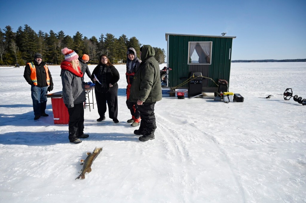 More than 1,000 people took to Cobbossee Lake on Saturday for an ice fishing derby that raised $10,300 for Cony Project Graduation, an annual celebration attended by graduating Cony High School seniors in Augusta.