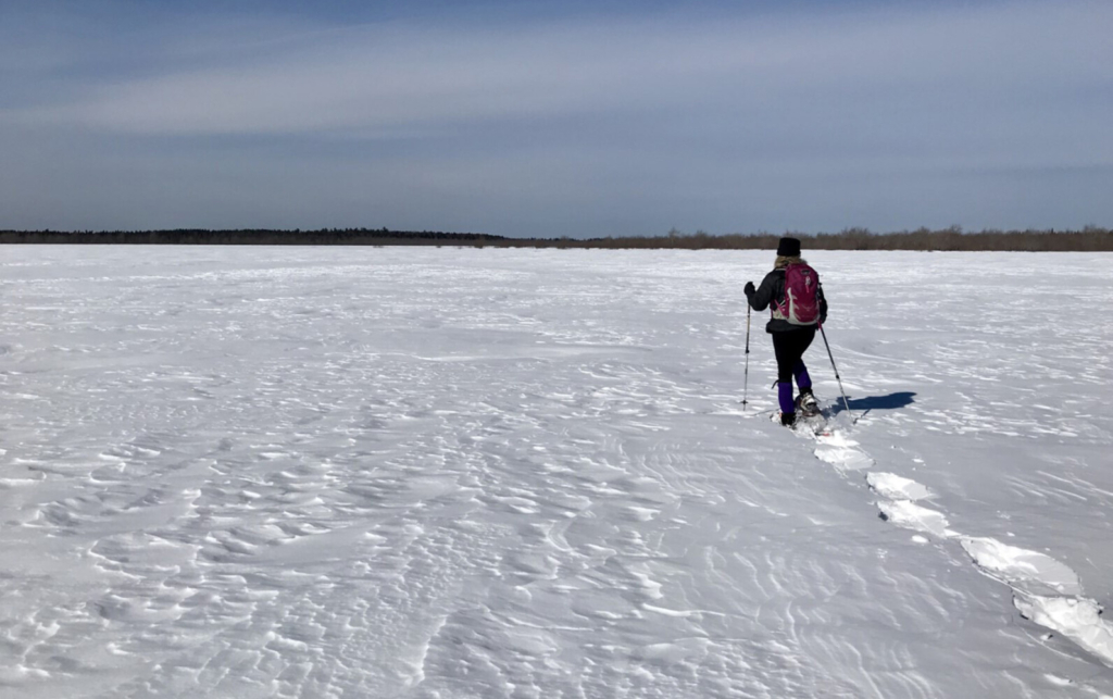 The snowshoeing was fabulous, but once out there amid the miles of tundra-like terrain, it was easy to long for Nordic skis to really break free and cover some ground. Next time. Nonetheless, I plodded happily along until the cold demanded a return to the margin of trees, where a sunny snowbank out of the wind provided a welcome respite for lunch and hot tea.