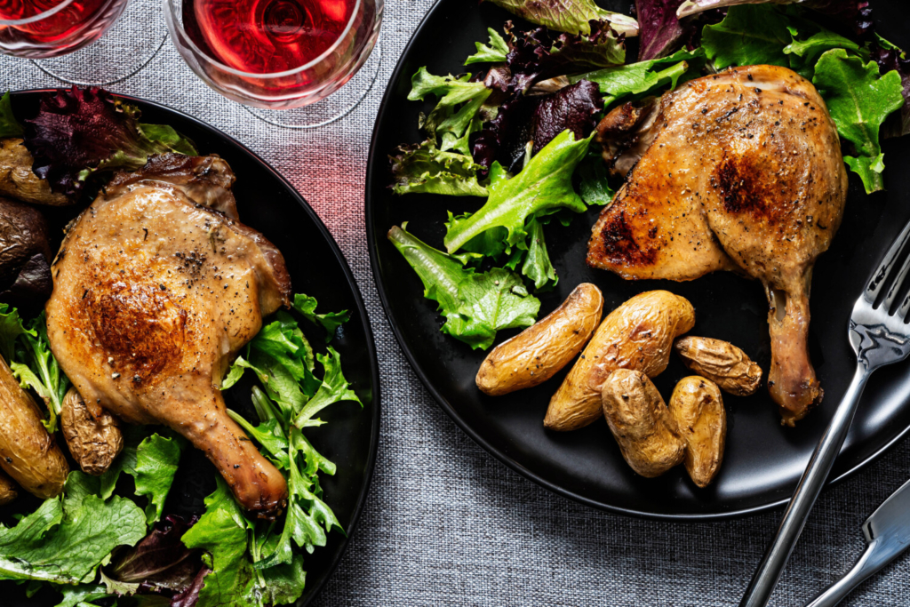 A staple at French bistros, usually accompanied by crispy potatoes and a leafy green salad, duck confit at once feels like a simple comfort and a luxurious indulgence. The glistening, crispy skin gives way to succulent meat falling off the bone in a classic French dish that, when prepared the traditional way, can seem daunting to achieve at home.