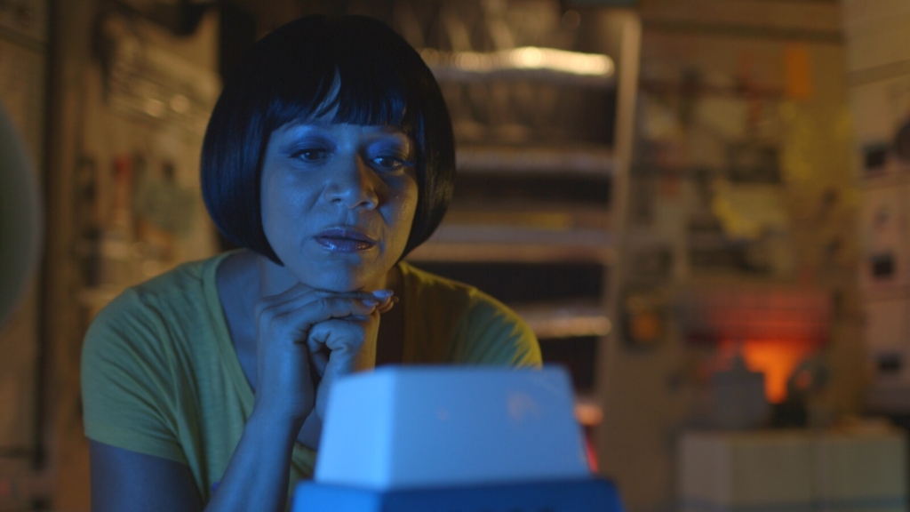 In “I Like Tomorrow,” the new short film by Maine filmmaker and College of the Atlantic Performance Art and Video Production educator Nancy Andrews, you can spot a book by legendary science-fiction author Octavia Butler. It’s sitting on the console of the ramshackle space capsule of lonely astronaut Captain Regina Lamb (played by versatile Hollywood actress Michole Briana White), just one of the ways that the solitary space voyager no doubt passes the interminable hours.