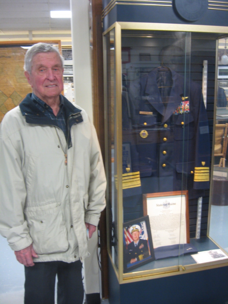 Bill Currier visits the Westbrook Historical Society where the uniform of his son, VADM John Currier, is displayed. Robert Lowell / American Journal
