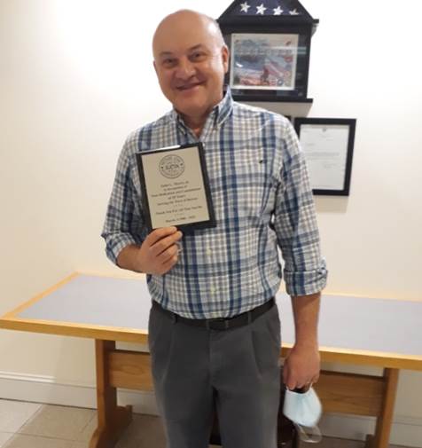 Town Clerk John Myers was honored recently at a selectmen’s meeting for serving 35 years as town clerk. His tenure began March 4, 1986. The plaque reads “In recognition of your dedication and commitment of 35 years serving the Town of Buxton. Thank you for all that you do.”
