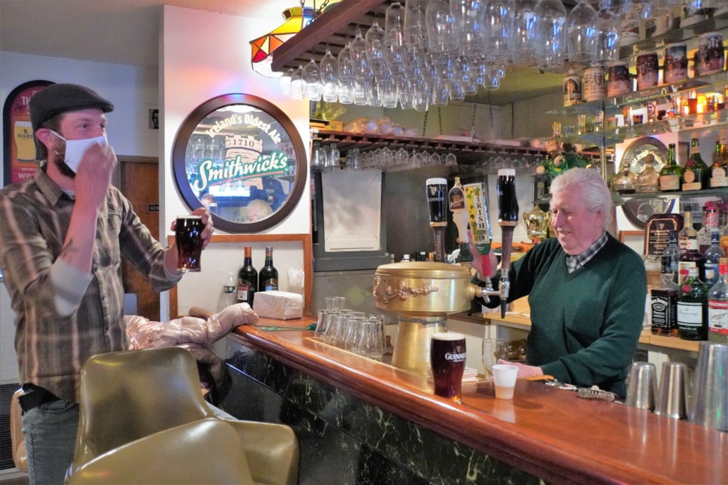 “We saw the writing on the wall when September came around,” said Brian from the restaurant on St. Patrick’s Day morning, where family and friends gathered briefly for camaraderie, and perhaps a celebratory refresher before they all walked over to City Square to raise the Irish flag. “Going into winter we just didn’t think it was viable,” he said, noting the stringent limits when dining-in was finally allowed, and so the WonderBar remained closed.