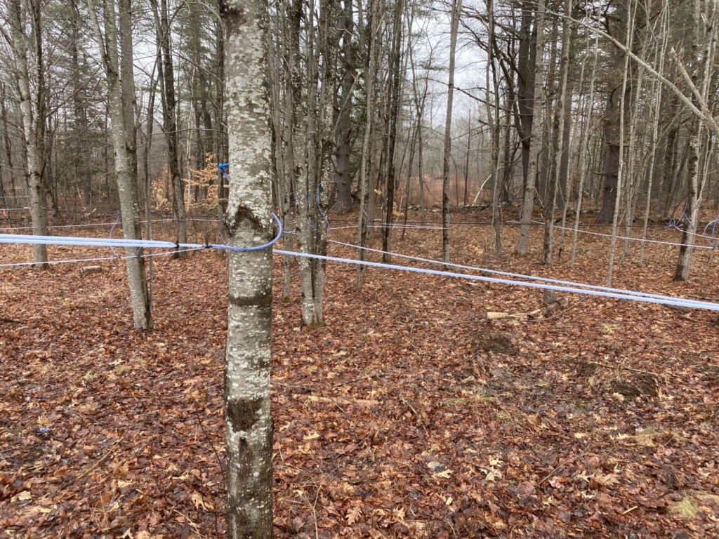 Tubing wraps around maple trees near Red Door Sugar Shack in Topsham. Darcie Moore / The Times Record