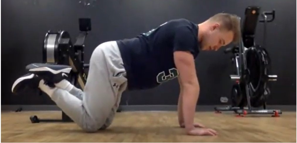 Trainer Noah Nicholas from Foley’s Fitness has been showing Wentworth School students different workouts in preparation for an obstacle course challenge later this spring. He has been teaching the students over Zoom since January. Courtesy photo Patrick Reagan