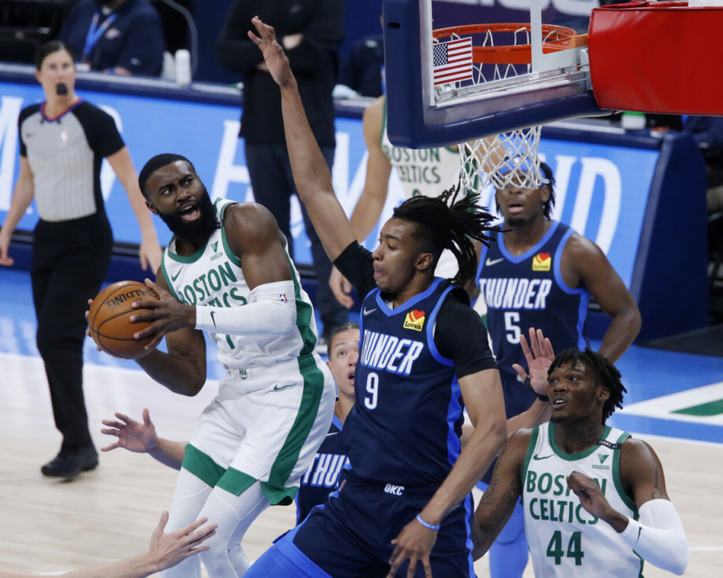 The Thunder led 80-76 heading into the fourth quarter. Jaylen Brown kept the Celtics in it with 13 points in the third.