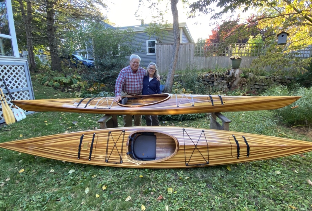 David and Margo Knight with the kayaks they constructed and donated to the People Plus senior center as a fundraiser.