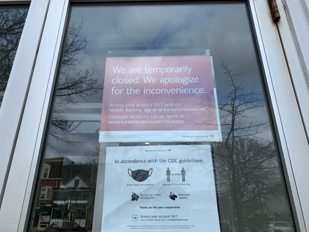 Brunswick’s Bank of America branch at 110 Maine St. is temporarily closed because of concerns surrounding COVID-19.
