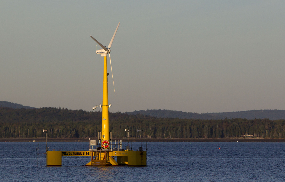 The University of Maine’s 9,000-pound prototype floating wind turbine off the coast of Castine in 2013. Robert F. Bukaty/Associated Press, file