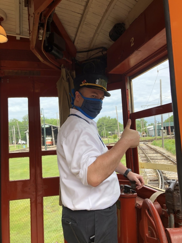 Masks are required at Seashore Trolley Museum for everyone ages five and older. Volunteer conductors clean trolleys with EPA-registered products before and after each ride. Hand sanitizing stations are available across campus. Courtesy photo