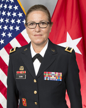 Dunn holds master’s degrees from the United States Army War College and the University of Maine, and a bachelor’s degree from Houghton College in Houghton, N.Y. Her professional military education also includes dual status commander and joint task force commander qualifications from U.S. Northern Command.