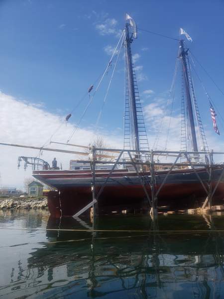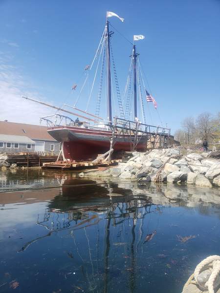 The French had regular maintenance and its annual Coast Guard inspection done at the Rockland shipyard. The schooner is on its way to Camden, where it will begin taking guests on trips on Memorial Day weekend.