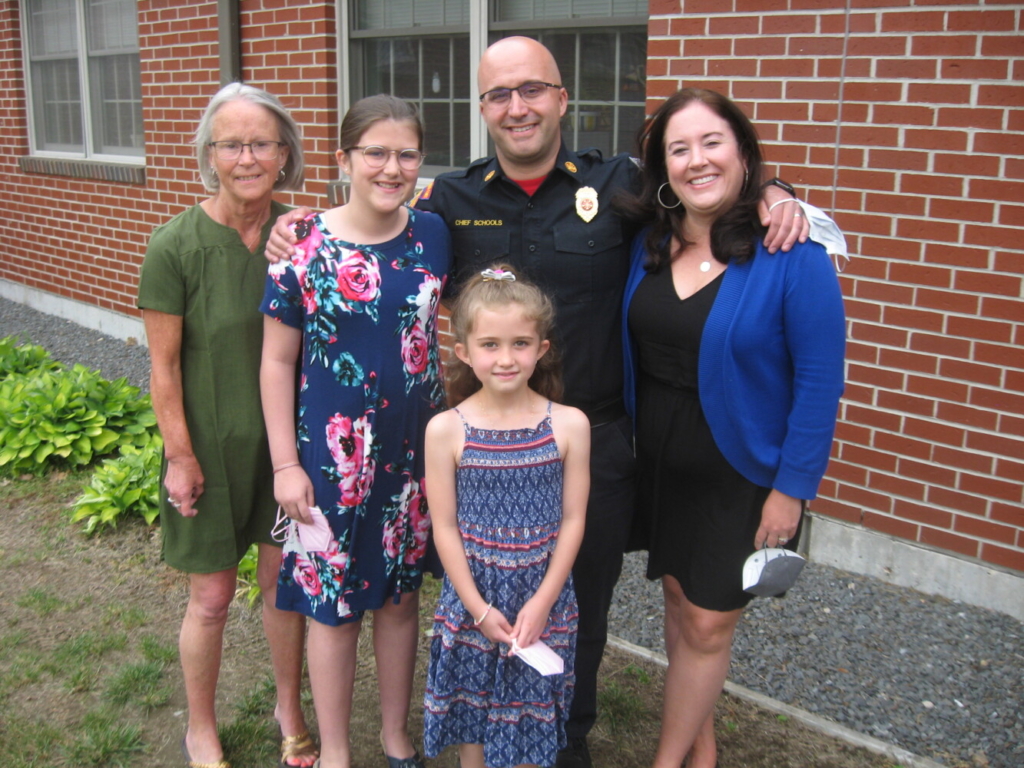 Schools was recognized in a surprise ceremony and reception June 2 with a large turnout that included his family, firefighters, town officials and residents.