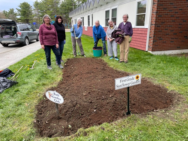 Members of the Bath Garden Club after preparing the sunflower garden at Dike-Newell School last month to get it ready for students to plant sunflower seeds. Club members who participated were Laurie Beck, Pat Shaw, Patty Boutilier, Gail Shean, Anne Armstrong Holly Guy and Betsy Fear. Contributed / Bath Garden Club