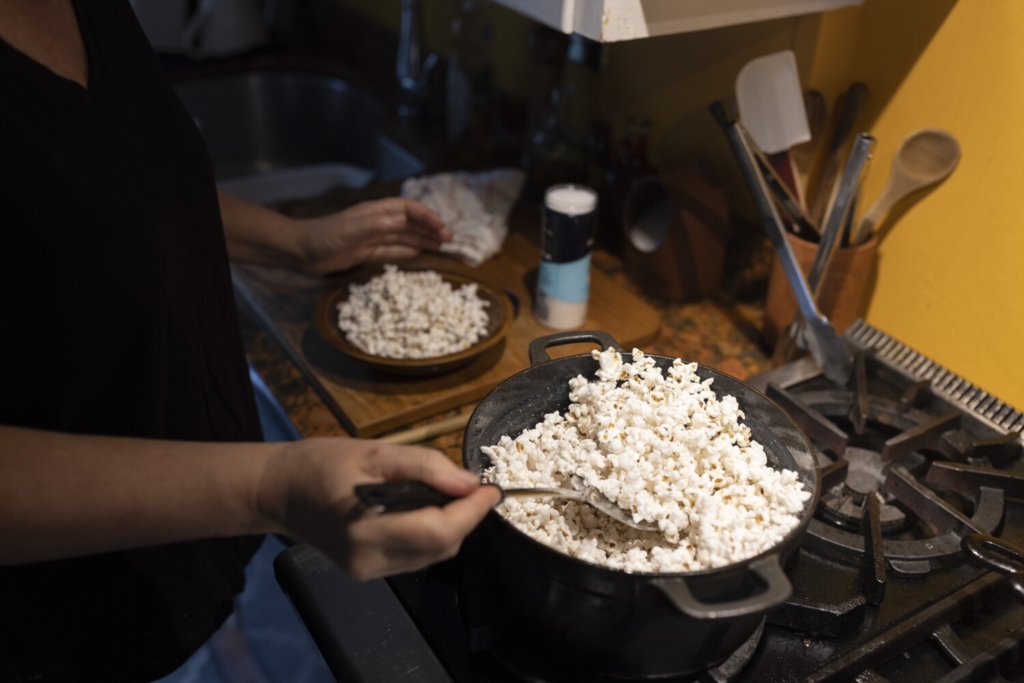 Rudalevige makes popcorn to watch with the new documentary film “Meat Me Halfway.” Brianna Soukup/Staff Photographer