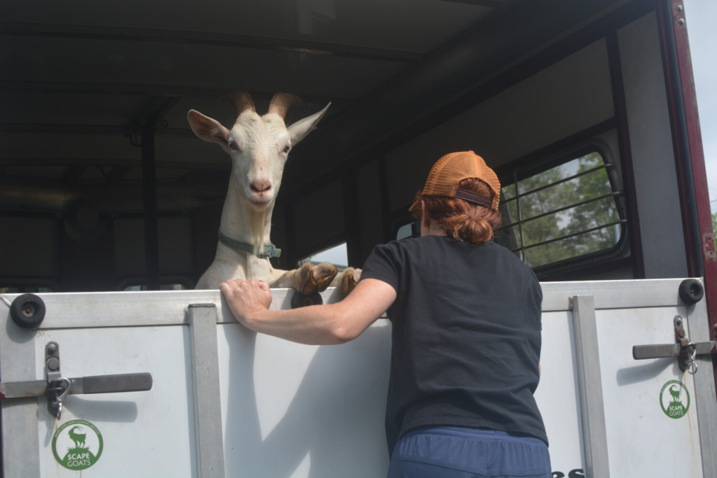 “Goats in particular like invasive plants. They like bramble, thorny plants, and they can digest these bulky thorny vegetations since they have four stomachs,” Lombard said, noting they are effective at clearing out rocky and bumpy land like the area around the boat ramp.