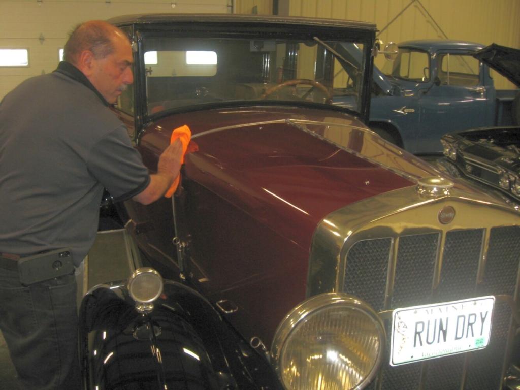 Richard Pratt of Gorham readies his 1929 Franklin Model 130 for the Lions Club Classic Car Show Sunday. Robert Lowell / American Journal