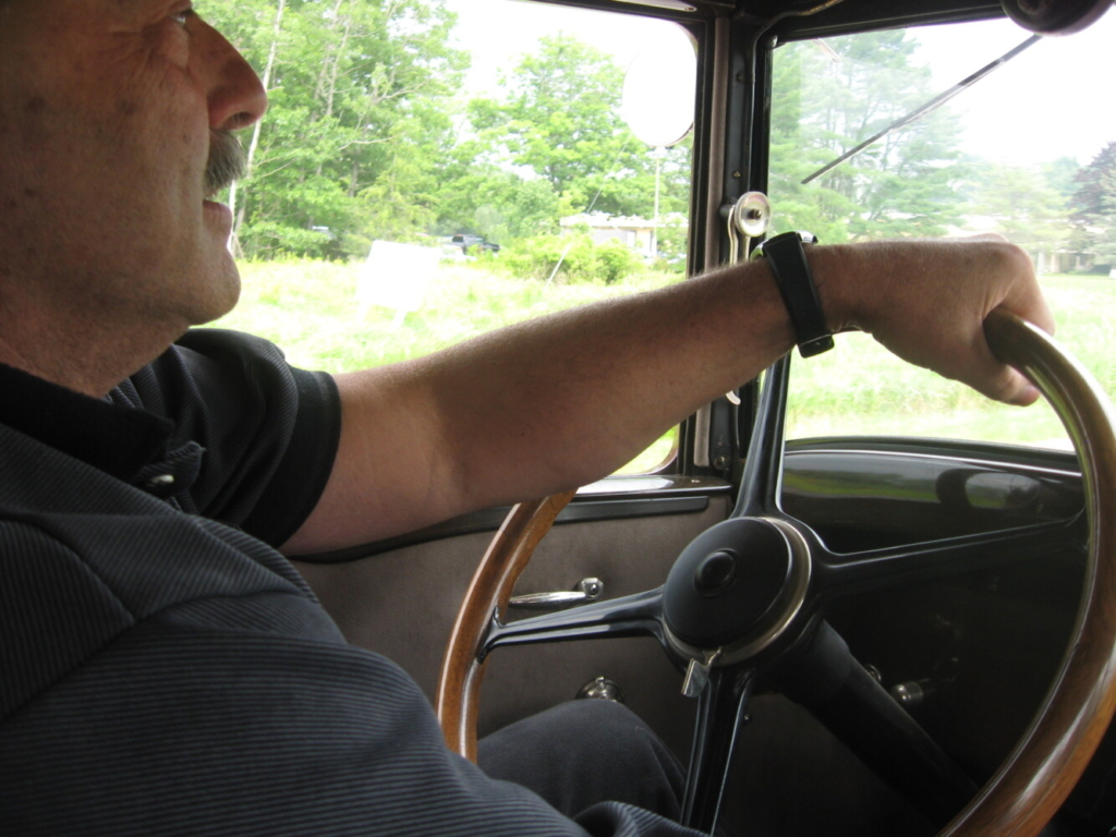 Richard Pratt behind the wheel of his prized 1929 four-door Franklin Model 130. Robert Lowell / American Journal