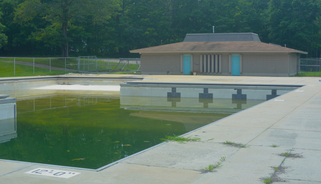 The pool in the park at 489 Main St. closed in 2020 because of the pandemic but remains off limits because of serious disrepair that makes swimming there unsafe. Repair costs for the pool and a new bathhouse were estimated earlier this year at $1.8 million, exceeding the expected costs by roughly $1 million.